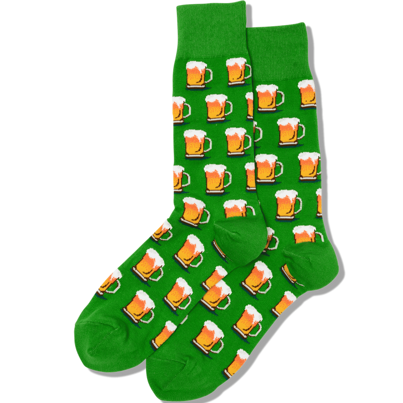 Here's a cheerful nod to the simple pleasure of a good brew. These socks feature a delightful pattern of foamy mugs of beer against a vibrant green background, making them a great accessory for a casual hangout, a trip to a local brewery, or just relaxing at home. It's an excellent gift idea for the craft beer enthusiast, the homebrewer, or any guy who enjoys winding down with a cold one. These socks are a fun way for him to show off his love for lagers, ales, and everything in between.