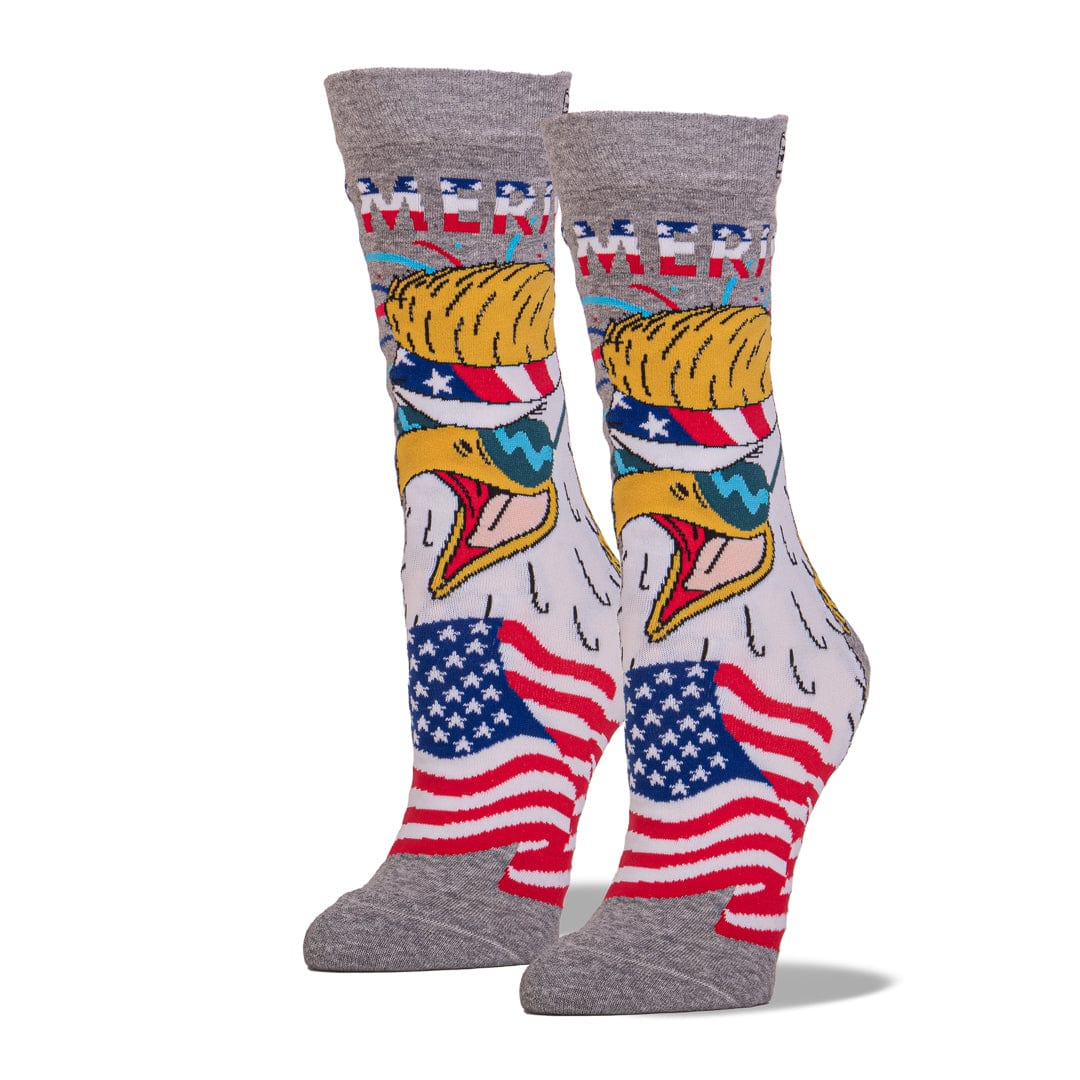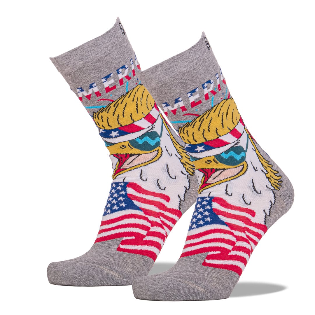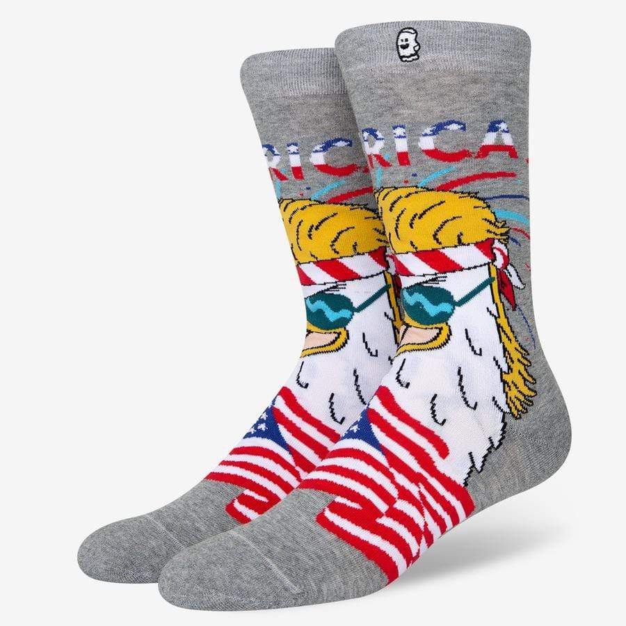 Have you ever seen an eagle with a mullet before? If you answered yes, you might have blood ties to Joe Dirt's pet Eagle, Deagle. These America socks say it loud and proud, combining the two greatest things in American history...eagles and mullets. 'Merica!Show your patriotism with mullets, BBQ, and beer. Rock out in these American flag themed 'Merica Crew Socks.  Founded in San Clemente, California by legendary entrepreneur/personality Rob Dyrdek and Stance Co-Founder Taylor Shupe, BooSocki® socks are made from high-quality yarn and produced in the most eco and socially responsible knit factory in the world, FutureStitch.