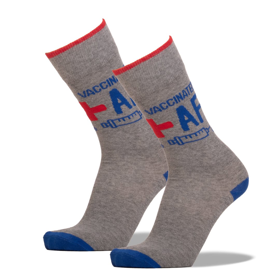 Vaccination is the administration of a vaccine to help the immune system develop protection from a disease. Once I'm able to get it, I'm wearing these fun and to the point Vaccinated AF Unisex Crew SocksPerfect for yourself or a vaccinated love one.