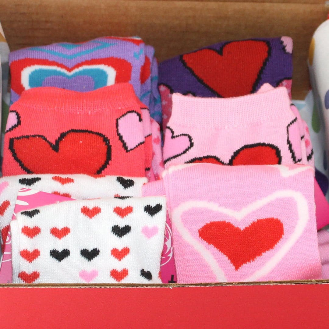 • You get our Valentine Fun Box of 6 Socks for Women for only $29.99!