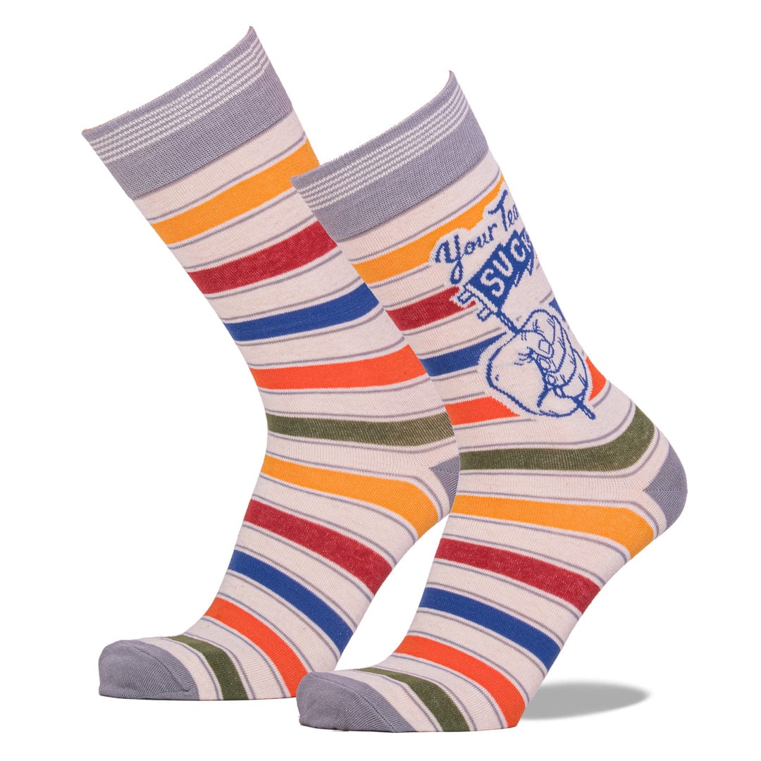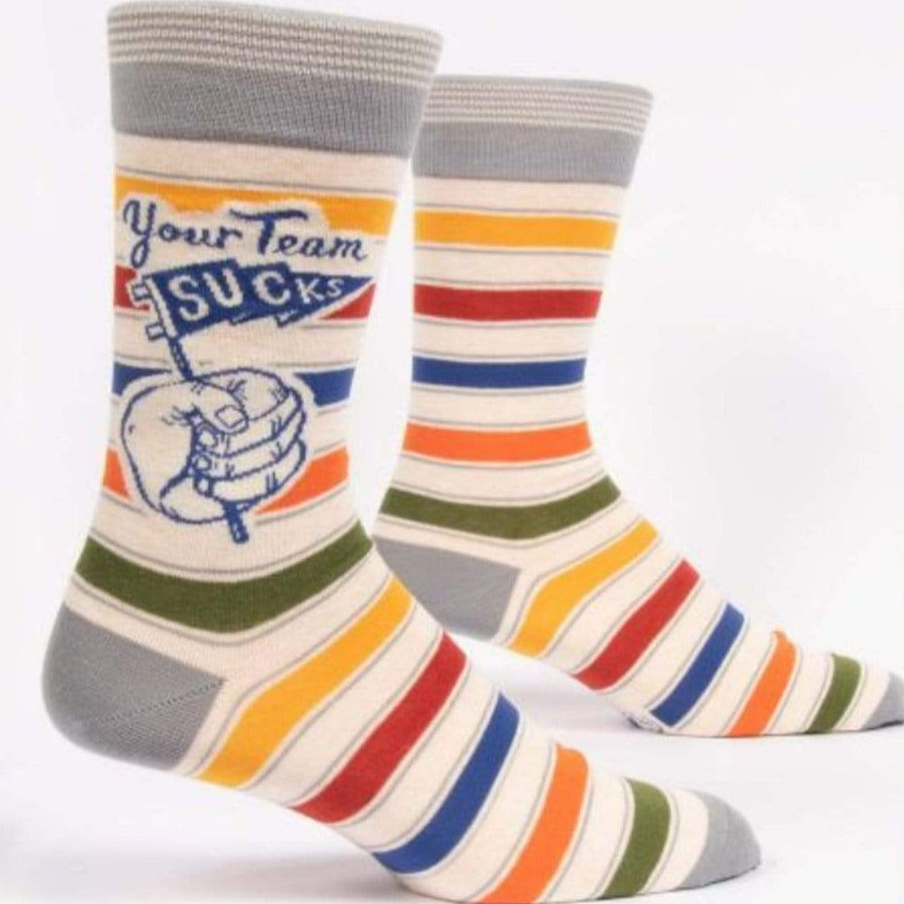 Do you love your sports team more then any other? Show your support by wearing these stylish Your Team Sucks Socks.  These sucks are a fun way to show off that you love your team and your not a fan of the other.