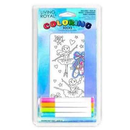 With Ballerina Coloring Socks you are now the sock designer! These sweet socks come with one pair of Color In Socks and four permanent fabric markers!