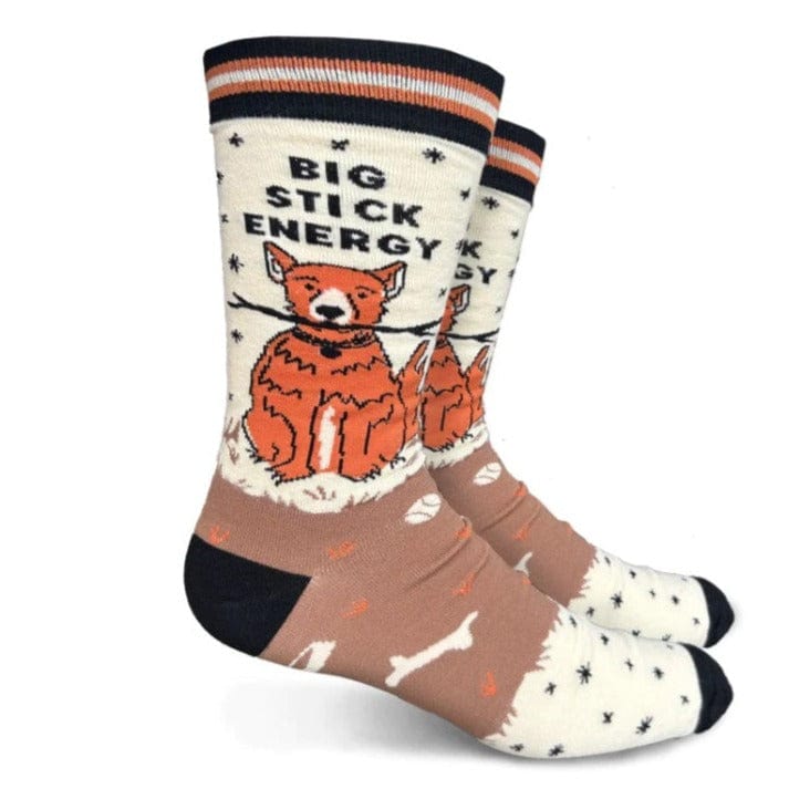 Get a paw-some boost of confidence with Big Stick Energy Men's Crew Socks. These funny socks feature a fun dog design and boast big stick energy, adding a playful touch to your outfit. Let your feet do the talking and strut your stuff with these crazy crew socks!