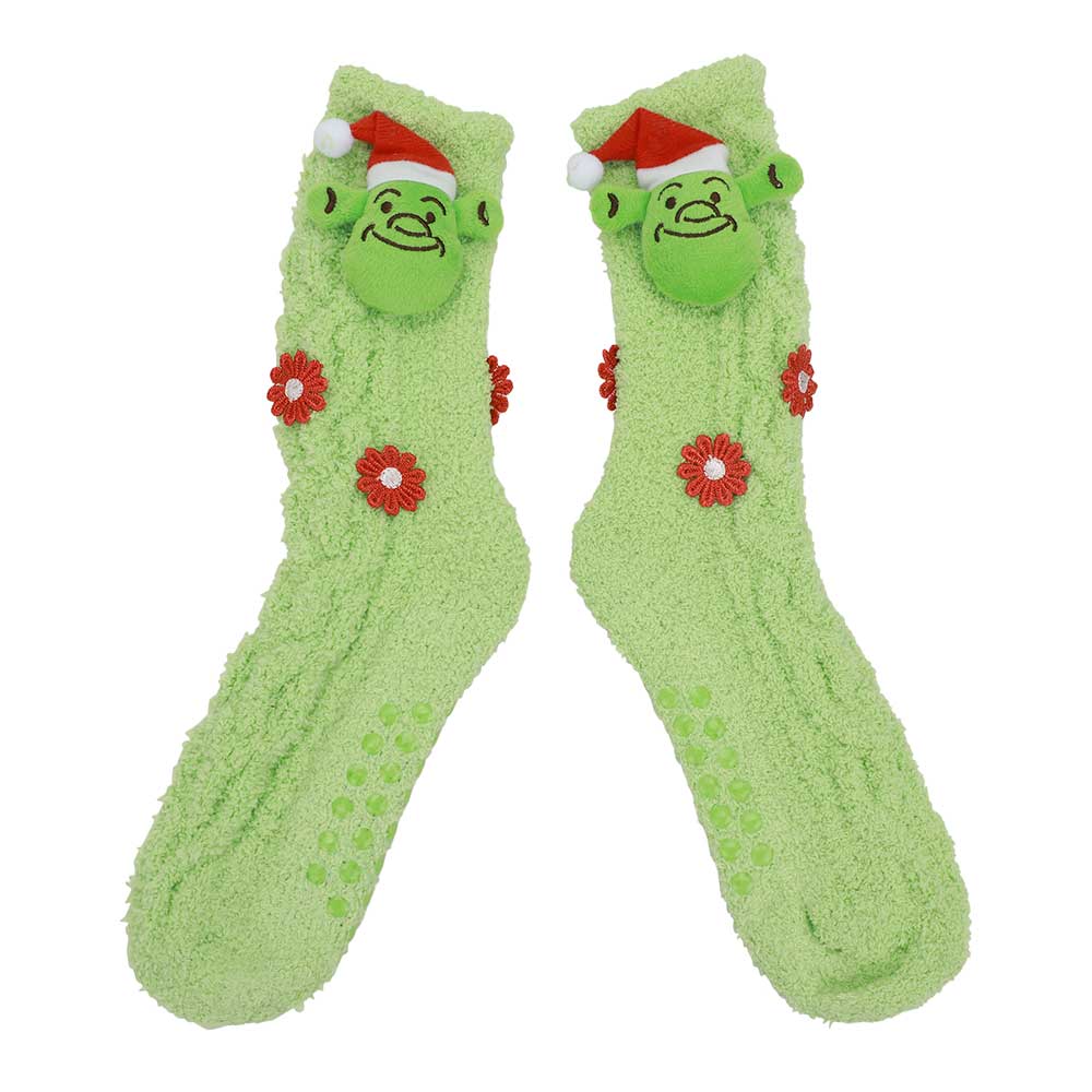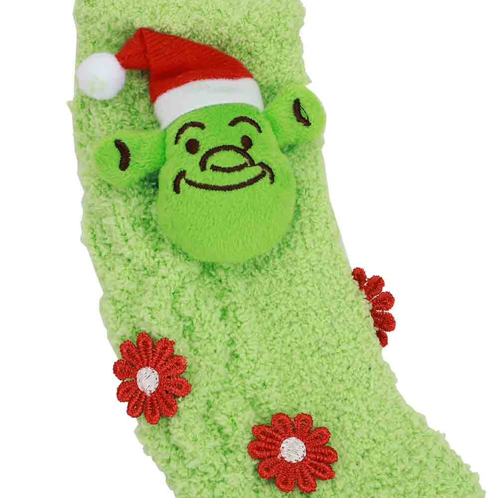 Unleash your inner ogre this holiday season with our Shrek Santa 3D Chenille Women's Crew Sock. These quirky and playful socks feature a festive design of Santa Shrek in 3D. Perfect for adding a touch of humor to your holiday wardrobe. (Only available in green, don't be a grinch!)