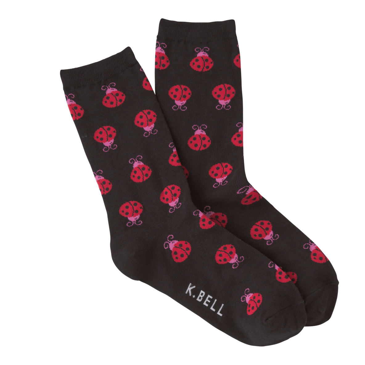 Our Ladybug Socks feature lots of happy little ladybugs that will surely brighten your day! These are black with pink-faced little ladies.