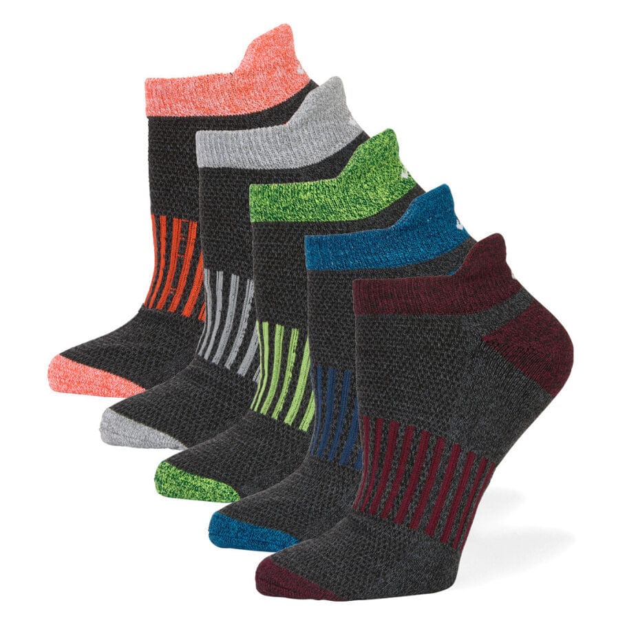 John’s Crazy Socks packs five low-cut pairs into one bundle for gym sessions, work commutes, and weekend errands. Each sock vanishes below the shoe line, yet a soft back-tab stops heel rub and slide-ins. Cool-touch knit keeps sweat moving off skin so feet stay dry mile after mile.