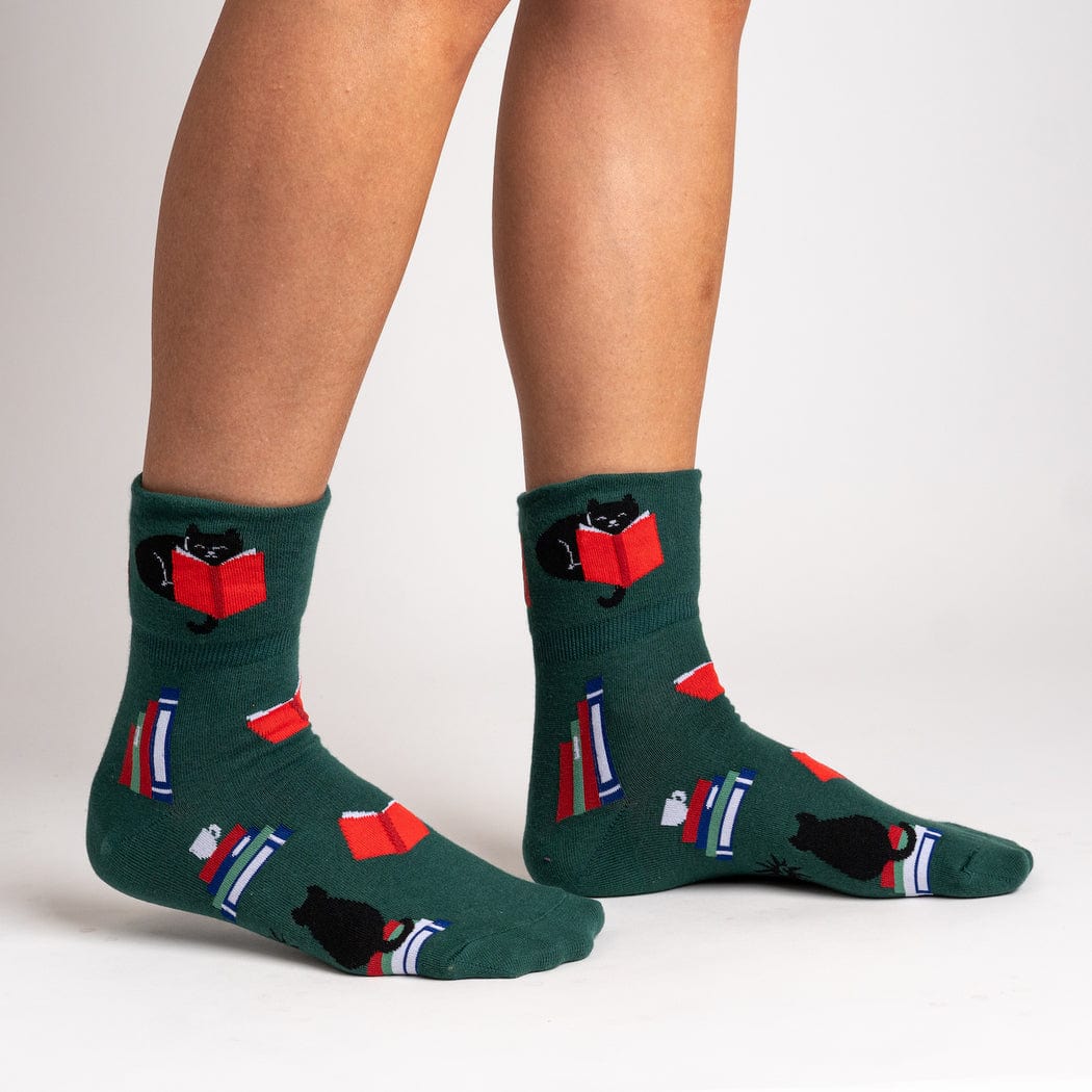 Perfect socks for bookworms and cat enthusiasts – cozy up with your two favorite companions! These turn cuff socks can be folded over for an ankle length, or unfolded for a crew length!