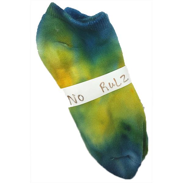 Join the No Rulz Art Socks Craze with these hand tie-dyed no show socks.No Rulz is a business built by individuals with and without special needs. Their success is due to their abilities, not their disabilities!