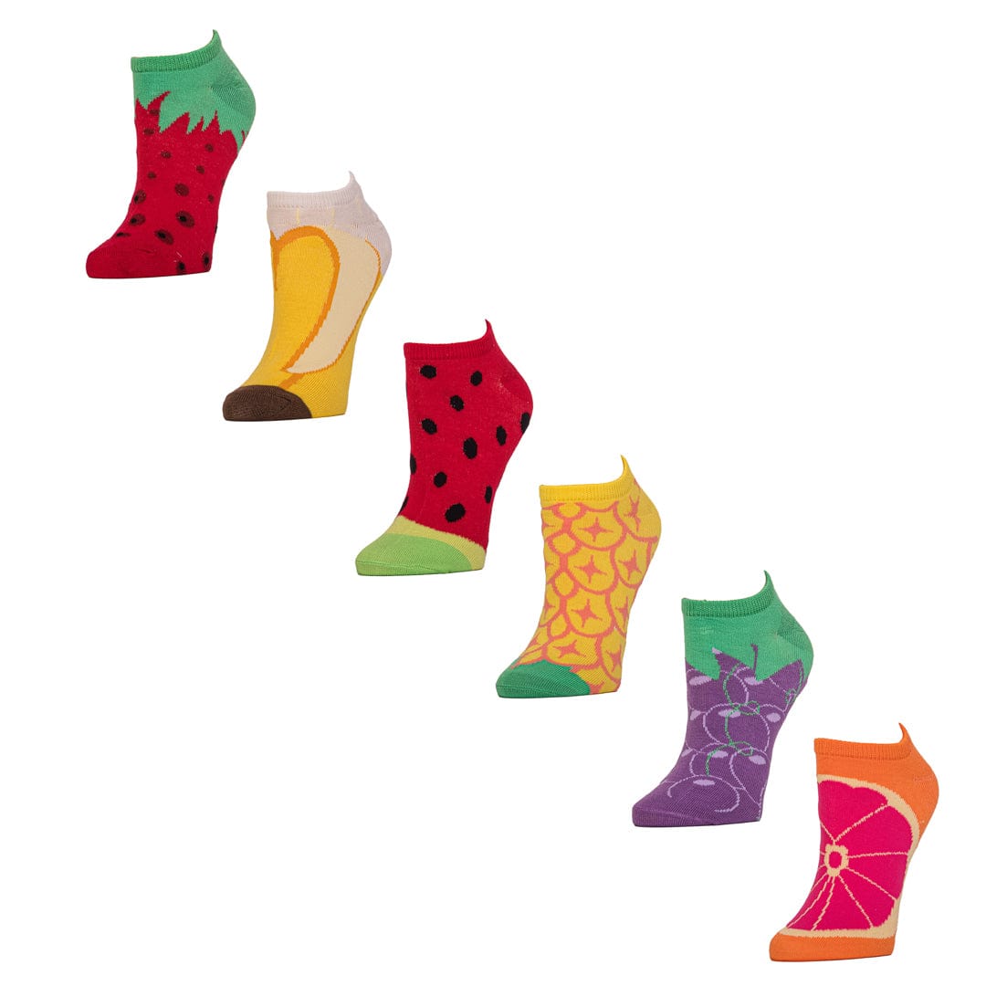 Add our fun and fruity Women's Fruit No Show 6 Pair Pack Socks to your outfit to make it all the more sweeter. With grapes, pineapples, strawberries, bananas and watermelon prints delivered deliciously on your feet.
