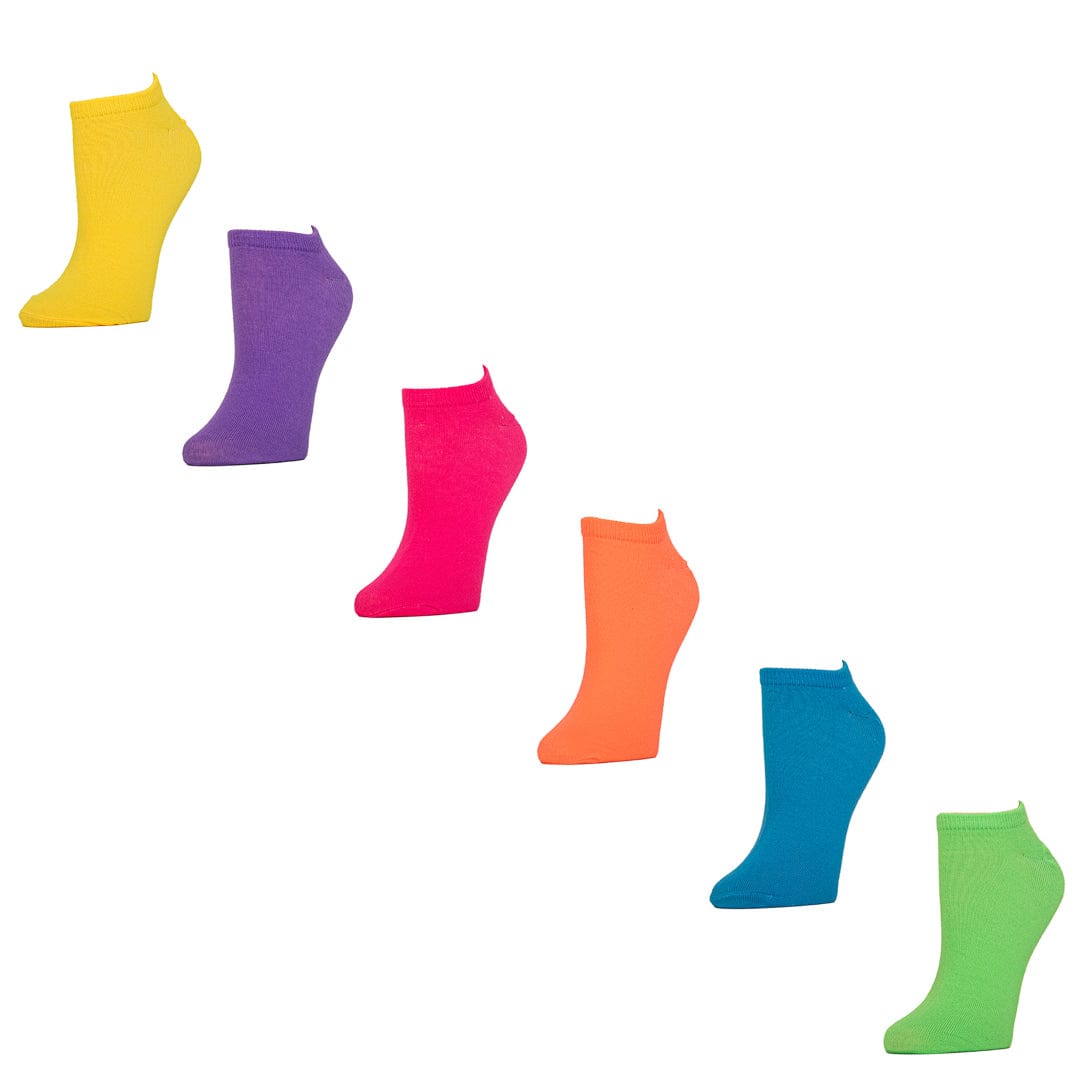 Colorful Crazy Neon Socks! Why have one when you can have SIX? This pack of ankle socks is a must-have for any sock drawer. Our Women's Neon No Show 6 Pair Pack are perfect to wear with any flat or sneaker.