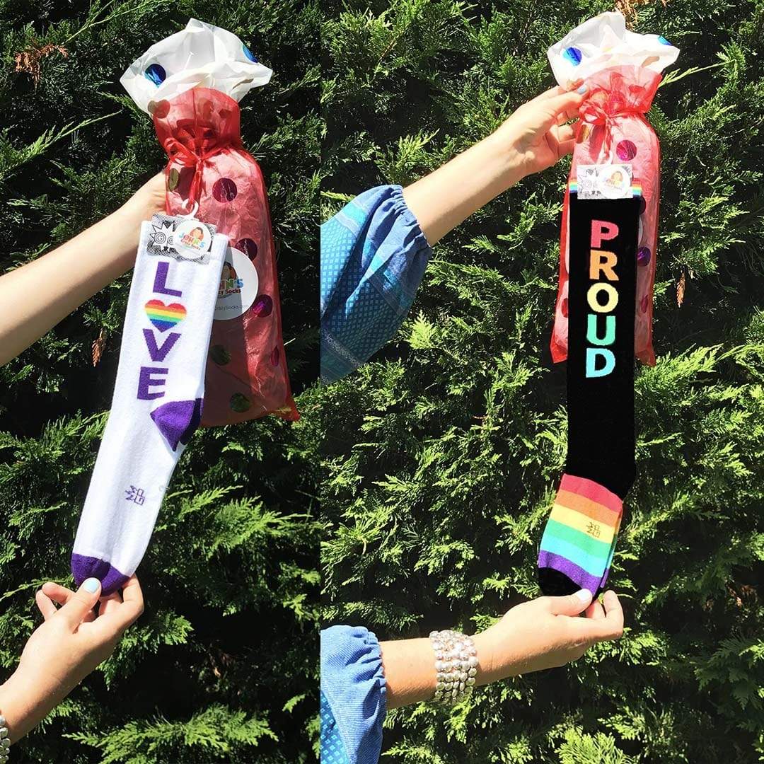 Love is love and we are on a mission to spread love and happiness through socks and awareness with our unisex Pride Gift Bag. We launch this bag with socks to support Gay Pride by Gumball Poodle in June to celebrate Pride Month and keep it lasting all year long.