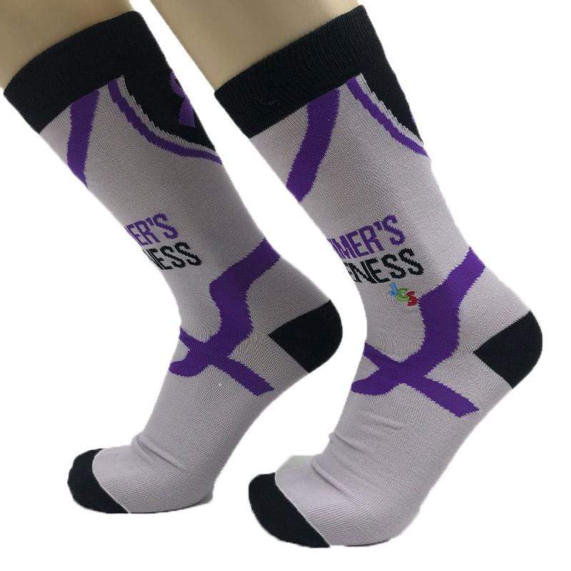 Have you or someone close to you been touched by the effects of Alzheimer's Disease? Our Alzheimer's Awareness Socks are not only beautiful but they are intended to raise money for research and promote awareness of the devastating effects of this disease.