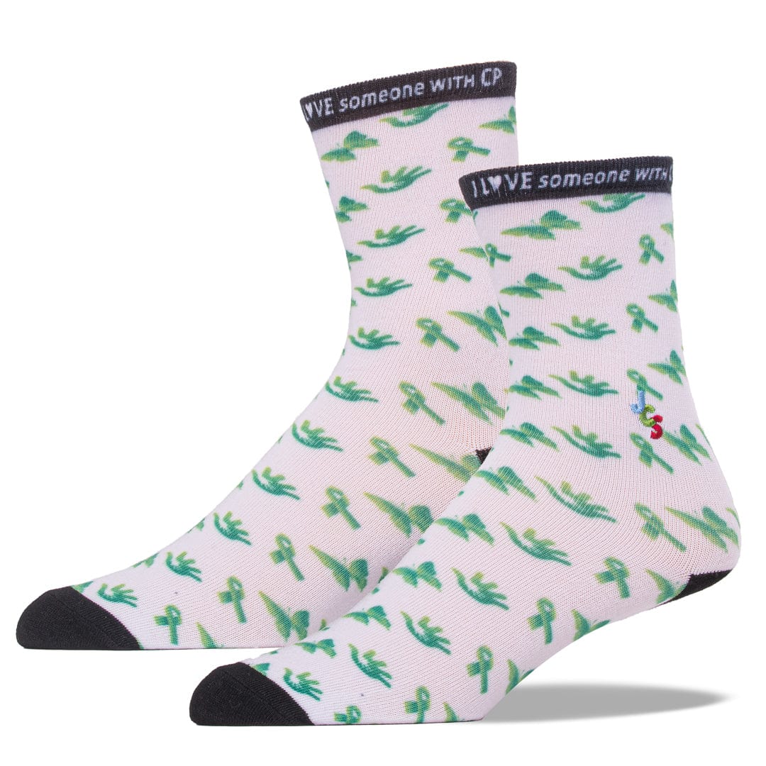Our Cerebral Palsy Awareness Pattern Crew Socks celebrate all people with Cerebral Palsy. We want the sock to be a celebration of people with CP.