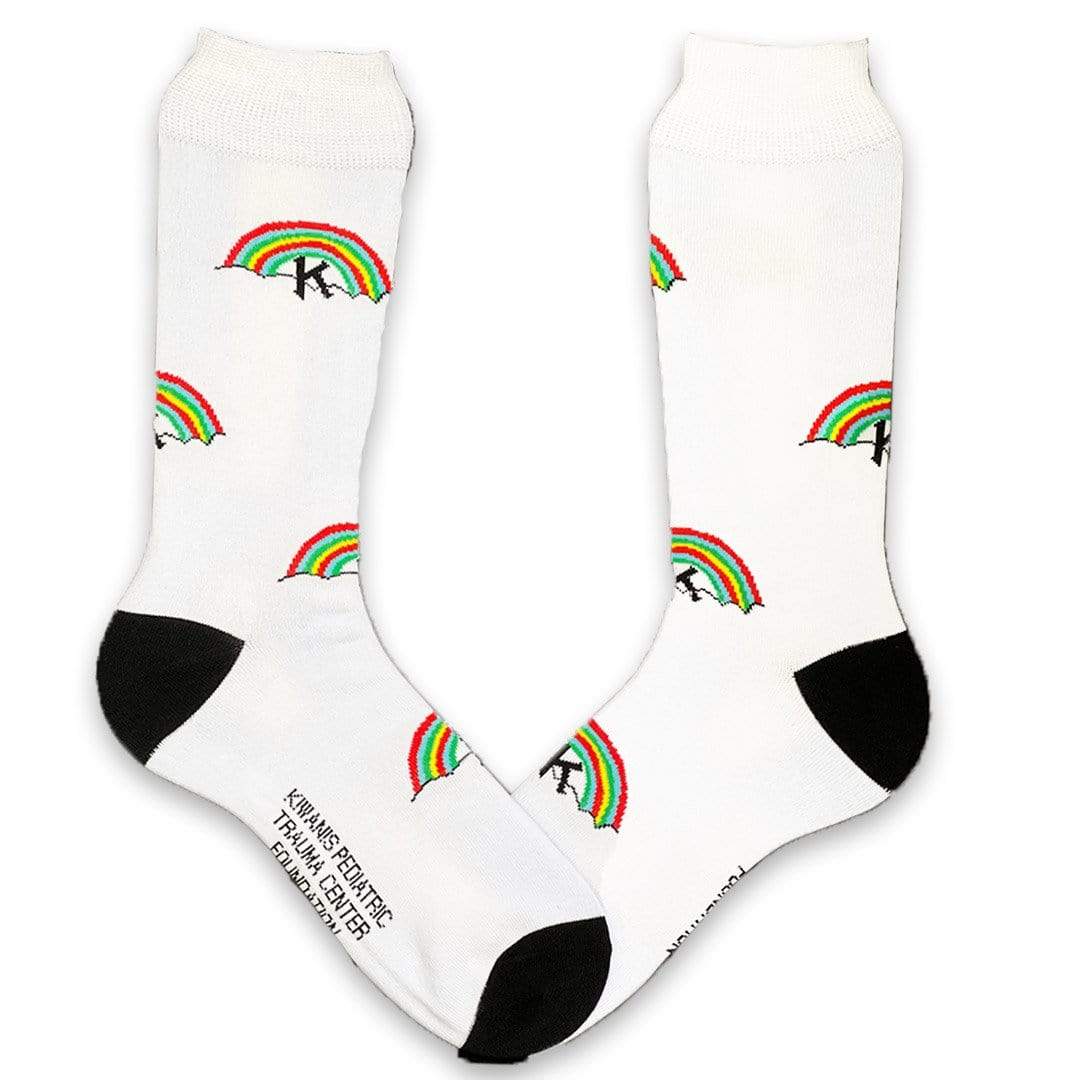 We created our Kiwanis Pediatric Trauma Center Foundation Unisex Crew Socks to highlight the work and mission of the Kiwanis Pediatric Trauma Center Foundation. White and colored with bright rainbows throughout grab these socks because they’re beautiful. Grab them because they’re comfortable. Grab them because they support a great cause. Just grab a pair for you and someone you love.