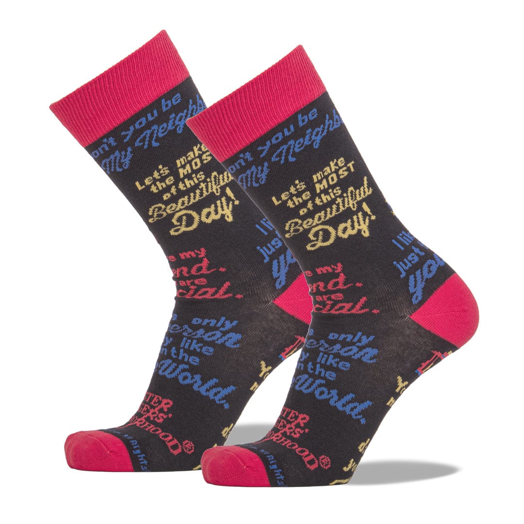 It's a beautiful day in the neighborhood when you're wearing these Mister Rogers Quotes Socks.  These stylish socks are filled with the best Mister Rogers quotes - "Let's make the most of this beautiful day", "I like you just the way you are", "You're my friend. You are special" and, of course, "Won't you be my neighbor".