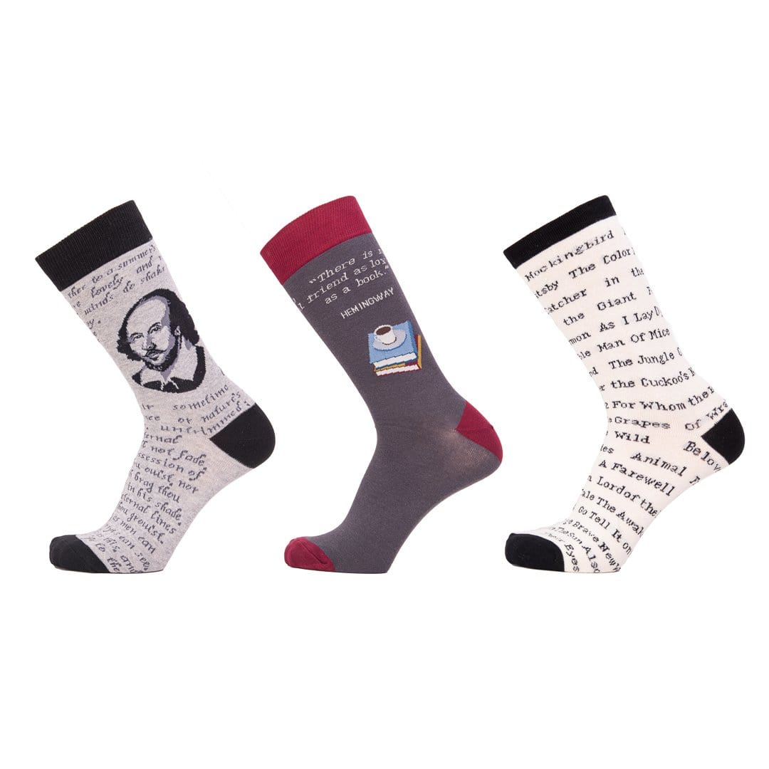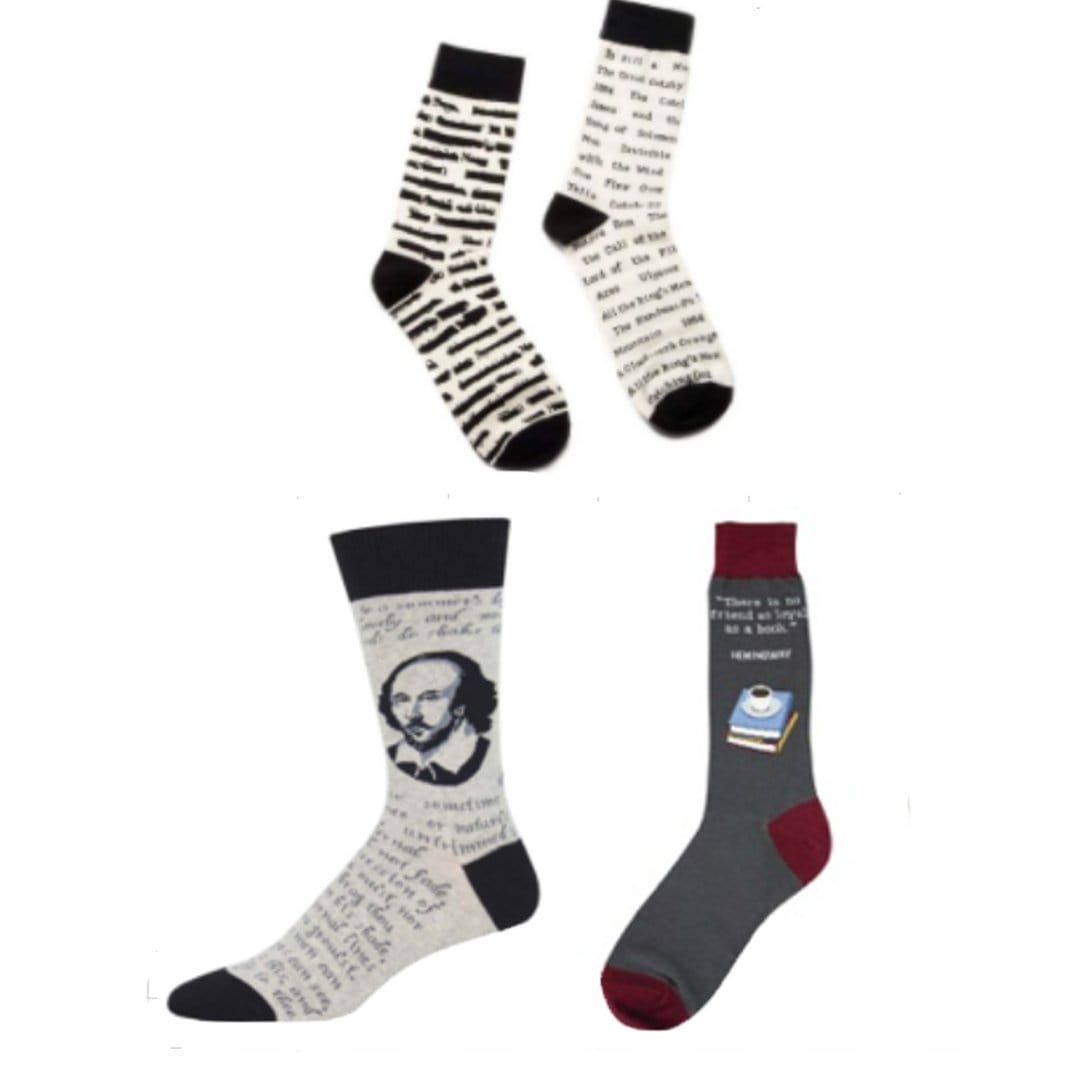 • 3 pairs of Men's Reading Theme crew socks