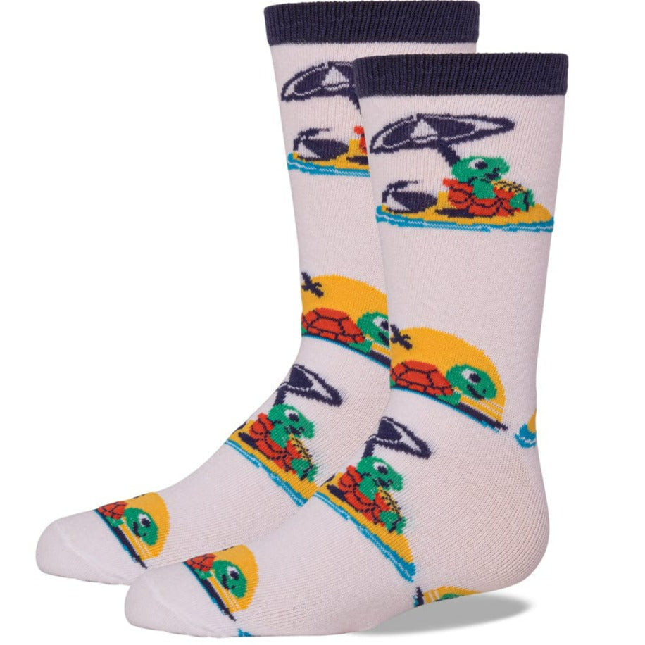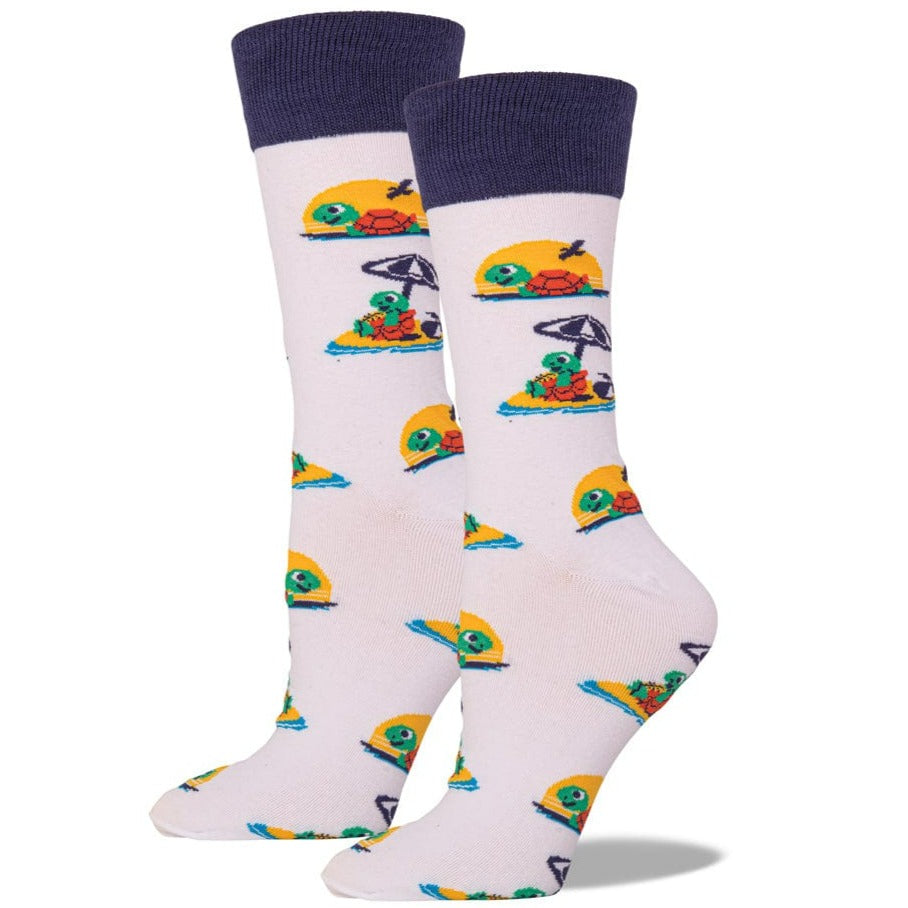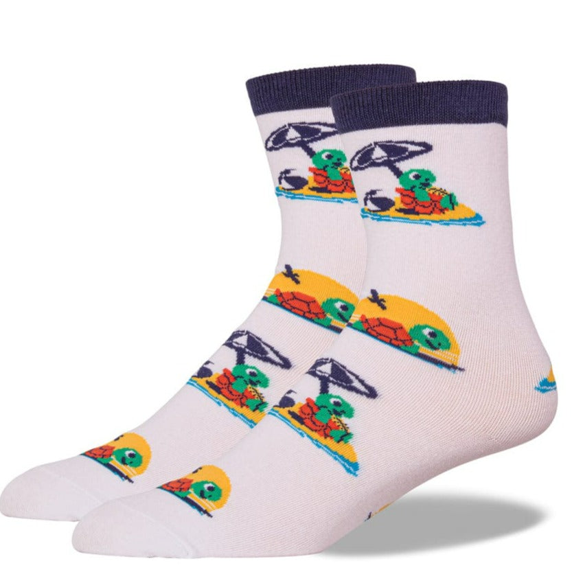 Be like this adorable turtle. Relax on the beach with these Beach Turtle Socks. Featuring an adorable turtle catching the sun, this sock is a must have for the Summer season or for someone who cannot let go of Summer. What is more adorable then these Beach Turtle Socks? Nothing!