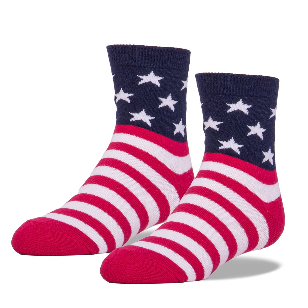Sometimes you want everyone to know that you bleed RED, WHITE, AND BLUE! For those times, we have our Kid's Stars and Stripes Crew Socks. Full of the red, white, and blue, this sock will have your favorite kid showing their country pride.