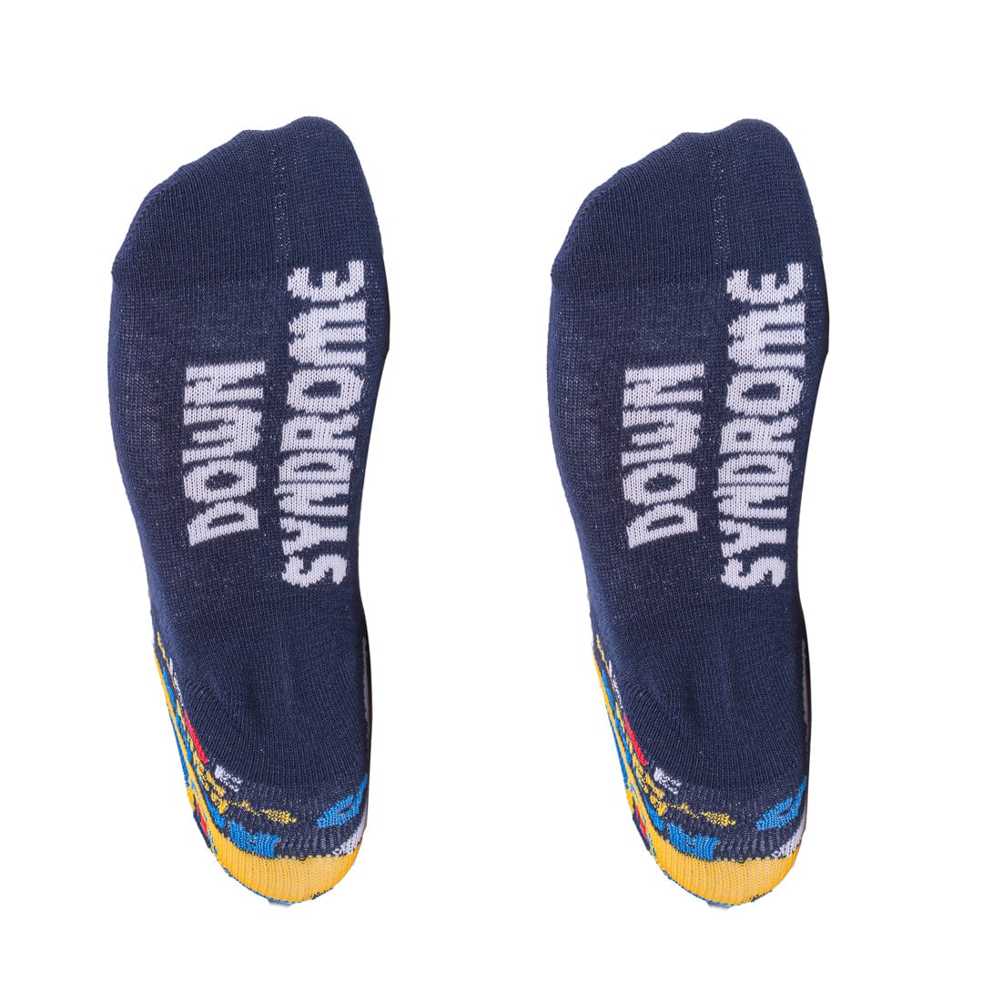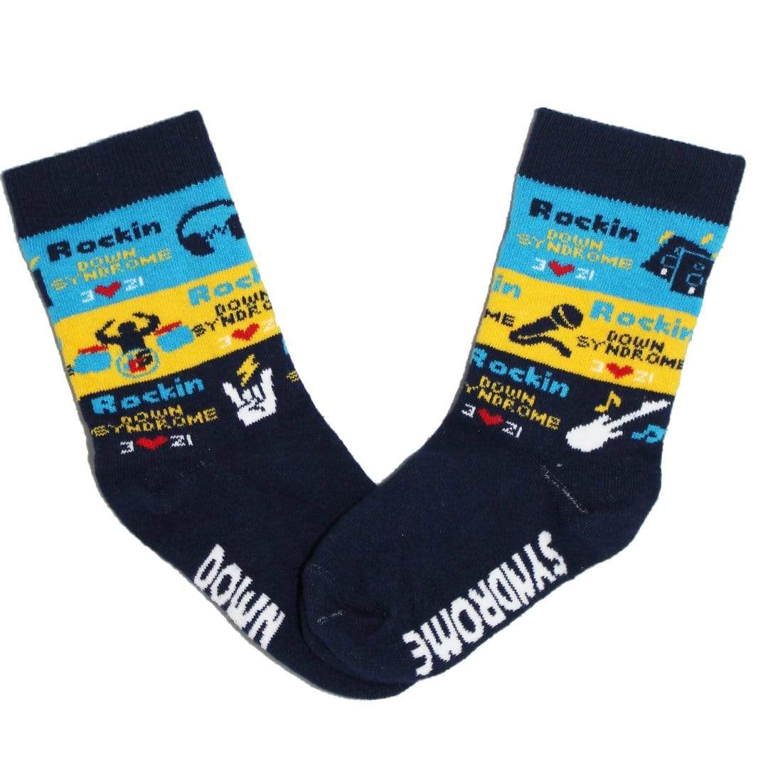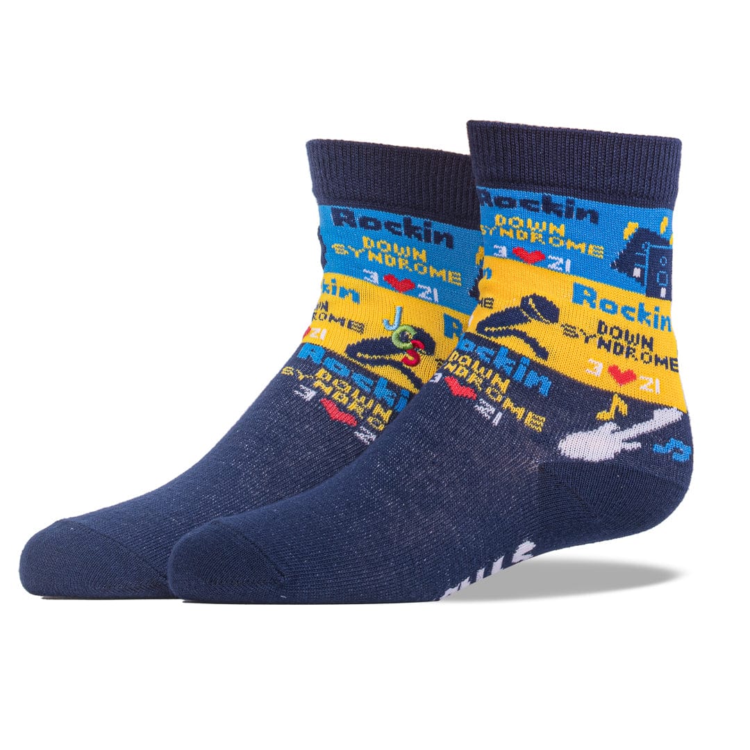 Our co-founder and inspiration, John Cronin, has Down Syndrome and every day demonstrates what people with Down Syndrome can do. He wanted to do something to raise awareness, so after helping to design the original Down Syndrome Awareness Sock, John then inspired the Navy Striped Rockin Down Syndrome – Junior Crew Socks. These navy socks come with the words “Rockin Down Syndrome” written throughout the top of the sock and decorated with various musical symbols and 3-21 to recognize National Down Syndrome Day, March 21st.
