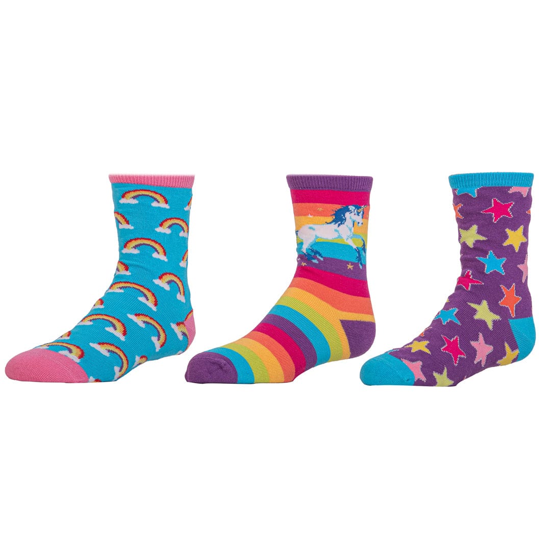 Your child is not afraid to sparkle and shine.  Our Sparkle Party Crew Sock 3 Pack proves that between the stars, the rainbows and the unicorn they love to stand out.  These show that you can always add a little flair to any outfit.