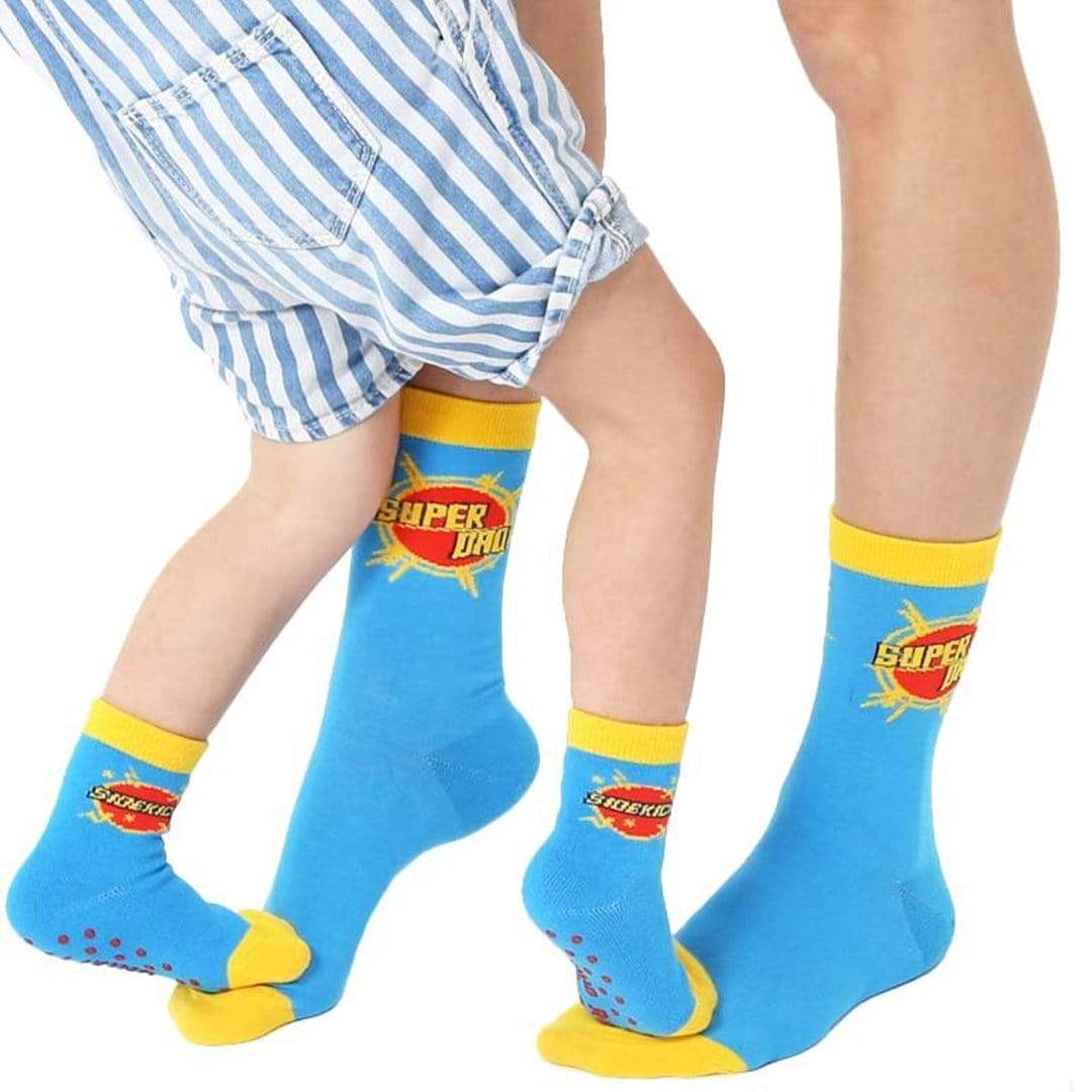 Crash onto the scene in a pair of Super Dad Me and Mini Crew Socks! It's time to unleash your inner hero with your mini me in these matching awesome socks! Perfect for Father's Day for the Super Dad in your life!