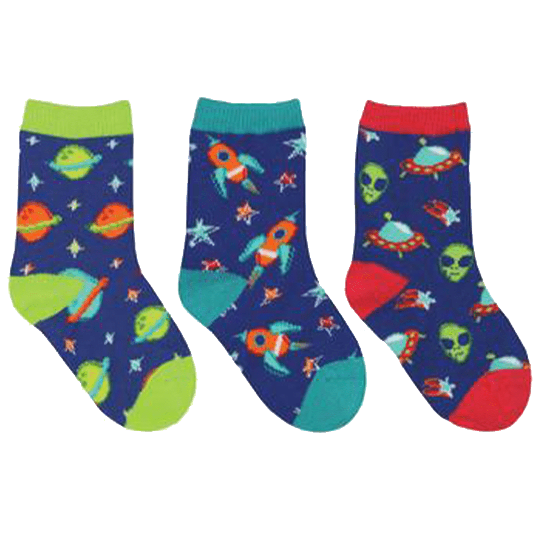 Then the whimsical To The Moon Kid's 3 Pack Crew Socks are for them.  The blue background highlights the beauty of space with all your child's favorite things.  The three pack gives you many space options for your future astronaut!