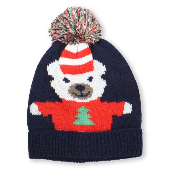 Brrrrr! It's so cold a polar bear would freeze! That is why the Holiday Polar Bear with Pompom Knit Hat is perfect to wear. This Holiday hat will keep you warm and cozy.