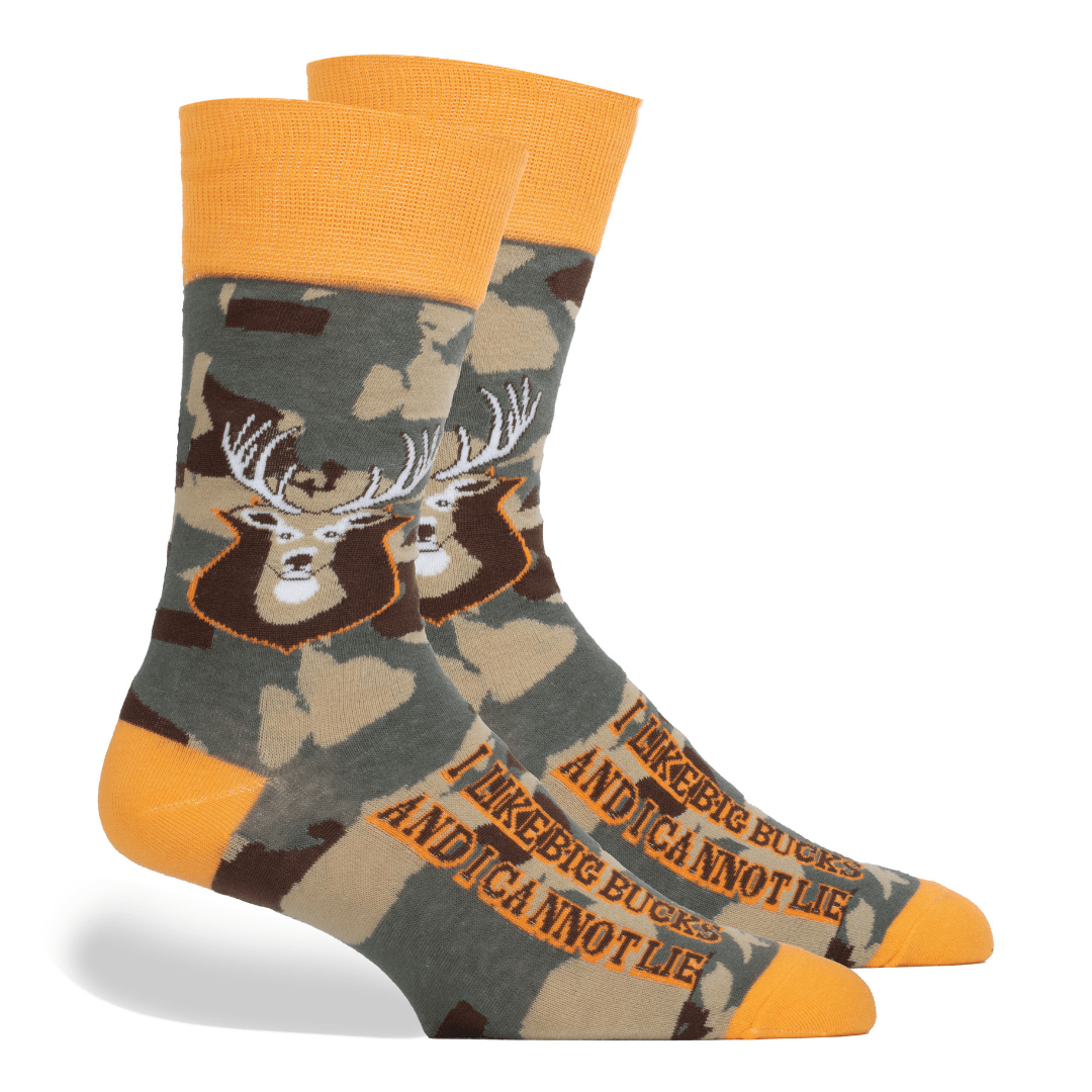 What do you get when you combine Sir Mix-A-Lot and deer hunting? These handsome I Like Big Bucks and I Cannot Lie  camo socks!
