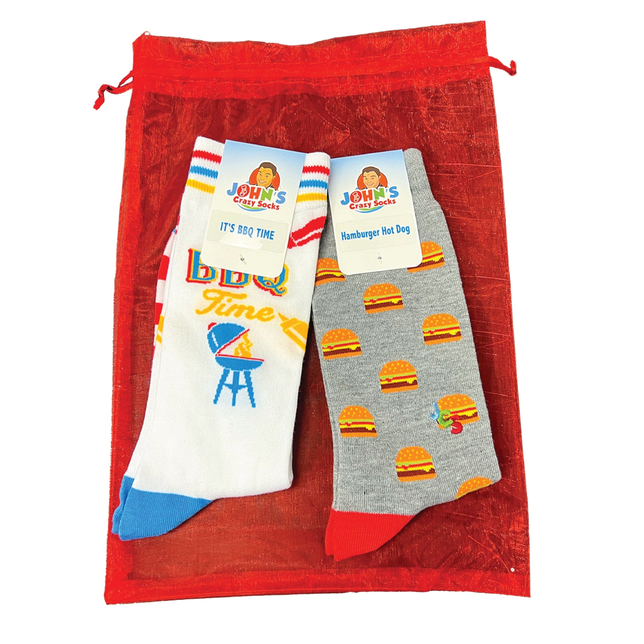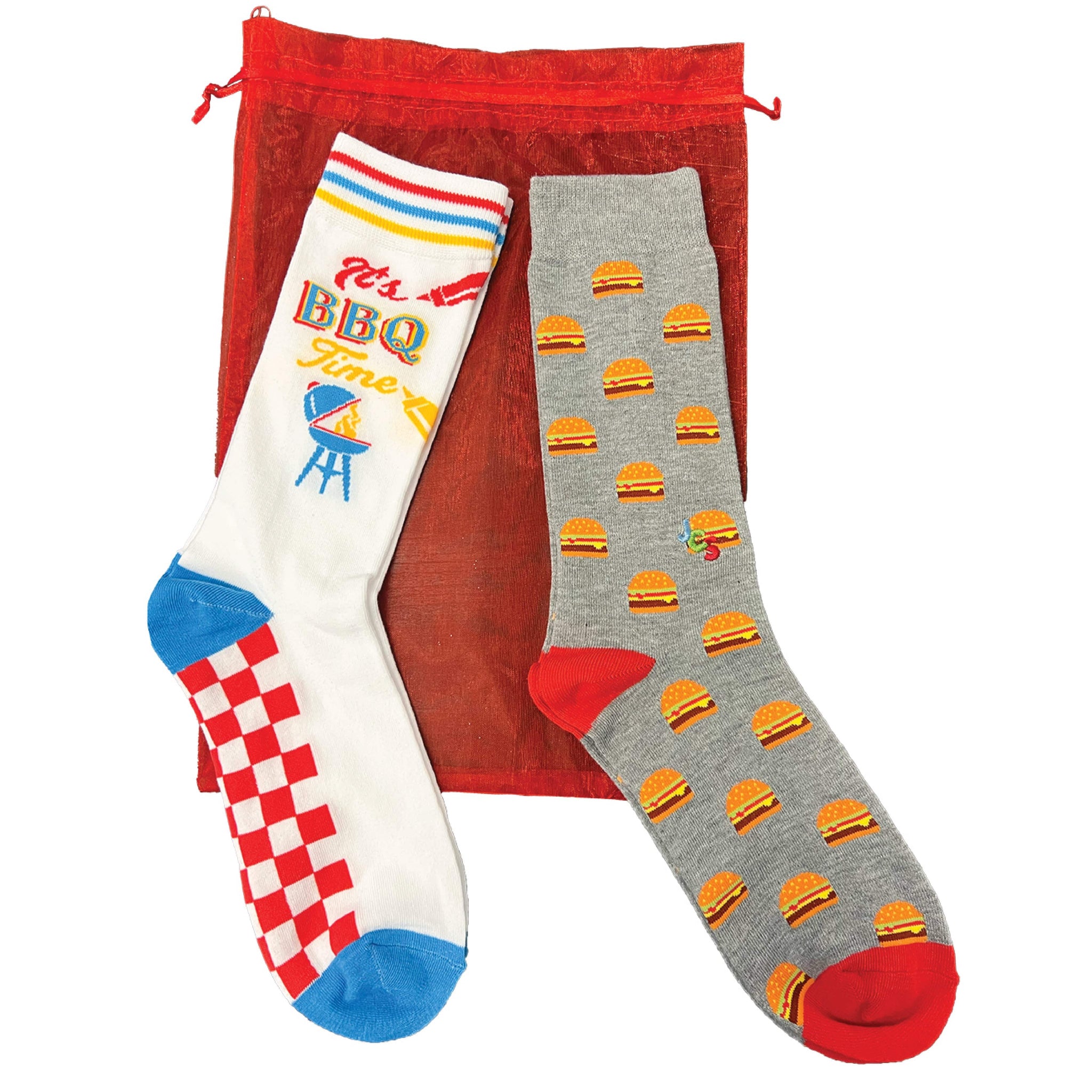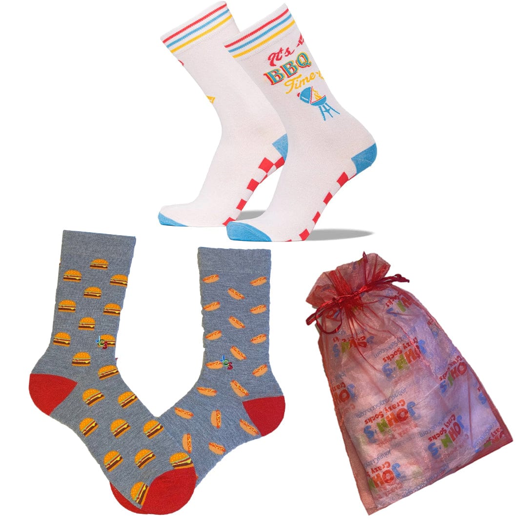 Grill up! You love to fire up the BBQ and get grilling. Who said being a meathead was a bad thing? This gift bag comes with 2 pairs of grilling-themed crew socks.
