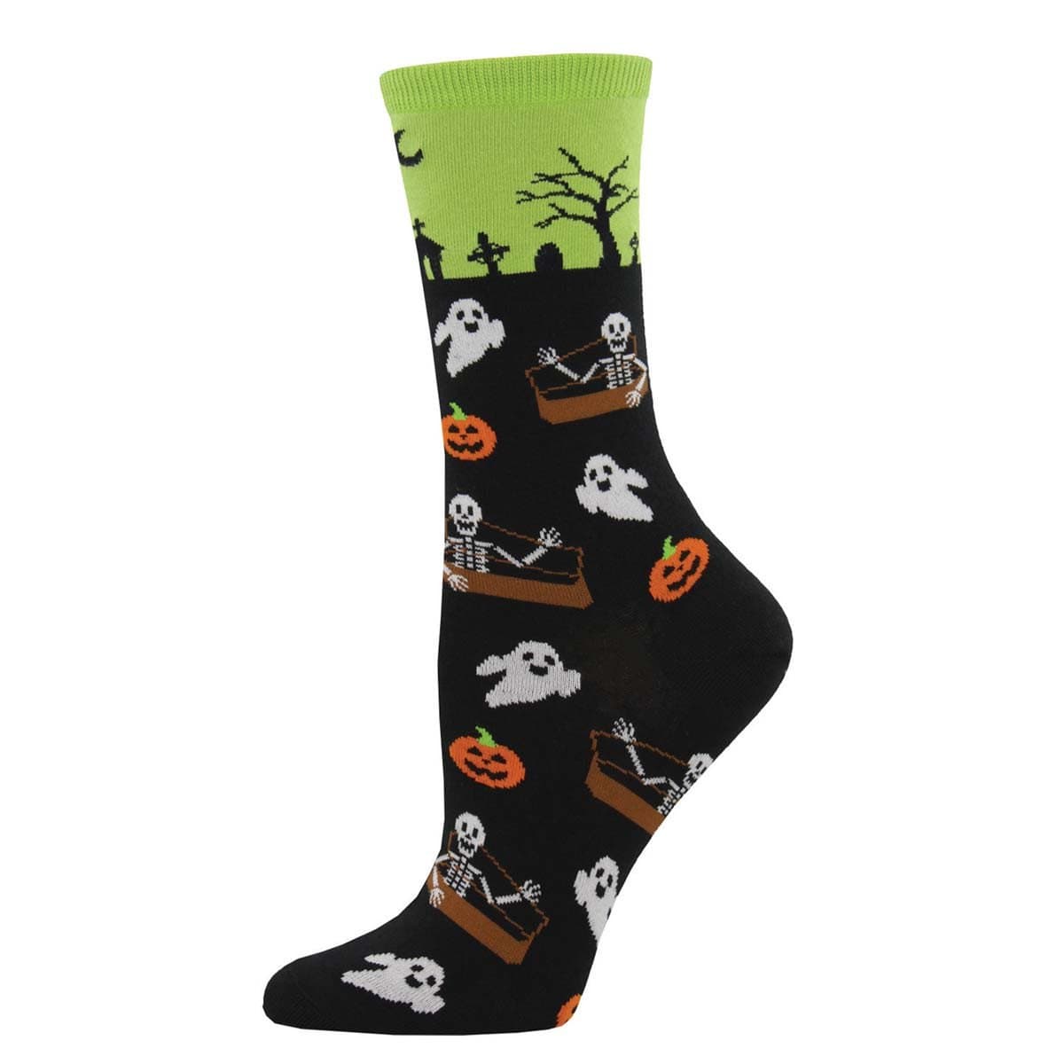These Undead Friends Women's Crew Socks  leave no room for boring in your sock drawer. Spooky ghosts and pumpkins in a graveyard? EEEEKKK!!