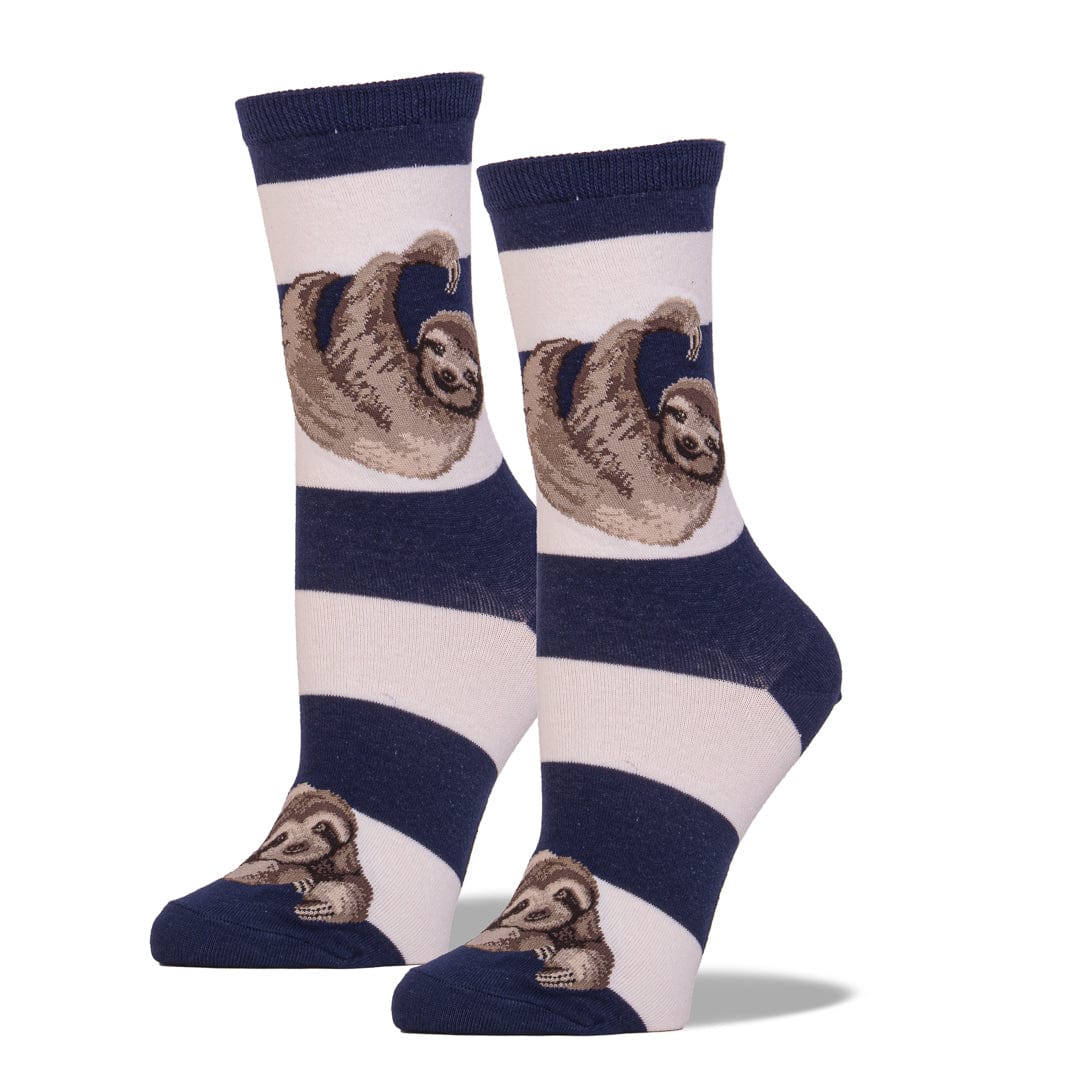 Our Sloth Stripe Socks take the beautiful – a bold blue striped sock – and add a playful sloth to make it both fun and sublime. Hiding amid the striped socks, you will find a furry, funny sloth. Some say the sloth is slow and lazy, but they are smart and conserve energy. For the sloth, that means no need to climb out of the tree if it can slow down and live on what it already has. For you, that may mean, why get out of bed when you could lounge for a bit a luxuriate in some extra sleep?