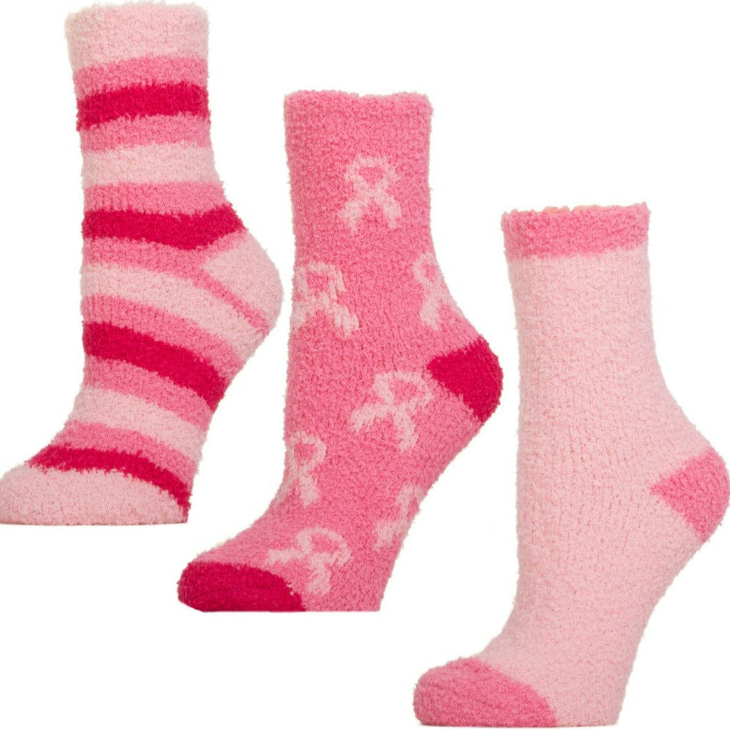 Breast Cancer Awareness 3 Pack Fuzzy Socks