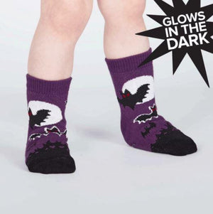 These Batnado Toddler Crew Socks are perfect for the little one who loves bats or thinks they're Batman! Indulge them with these cute and comfy socks. Best part is, they glow in the dark!