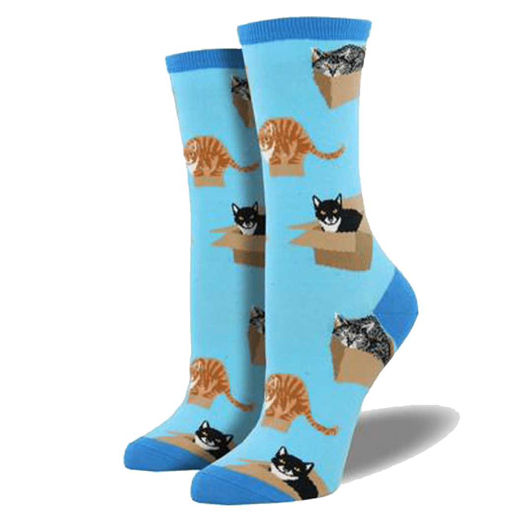 Our Cat In A Box Women's Crew Socks are PUURRR-fect for the cat lover in your life or a gift to yourself to show love for your kitten.