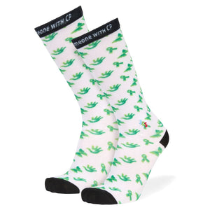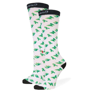 John's Crazy Socks is all about spreading happiness and spreading awareness. For years we have been asked to make Cerebral Palsy sock and we have finally created one. The Cerebral Palsy Awareness Pattern Knee High Sock celebrates those who have Cerebral Palsy.