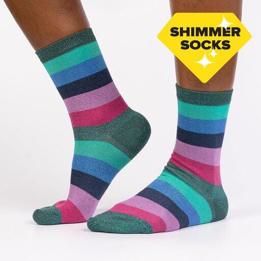 Bright and lovely, the Crown Jewels Women's Crew Socks will instantly brighten up your mood.  These beautiful, shimmery striped socks are just what you need.