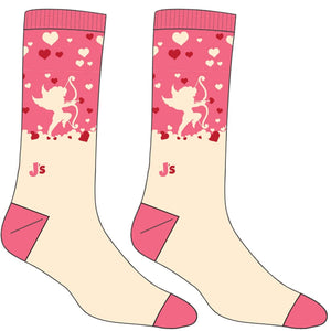 Fall in love with these Cupid Women's Socks are perfect for you. Cupid's arrow is ready and waiting for you. Just look at our Cupid Women's Crew Socks as a sign that it will happen before you know it.
