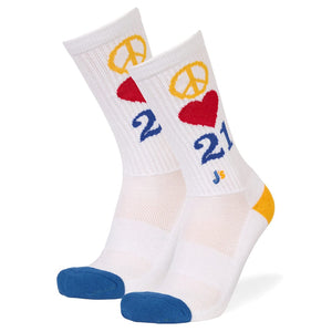 This beautiful gift bag includes three of our unique Down Syndrome Awareness theme Athletic Crew socks and a fun Down Syndrome Superhero sticker - all perfect to wear on March 21st!