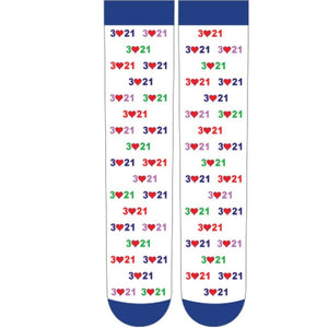 We wanted the Down Syndrome Awareness Socks to be colorful, fun and beautiful. The 3-21 represents both World Down Syndrome Day (March 21) and the extra chromosome that people with Down syndrome carry. Most of us are born with 23 pairs of chromosomes, but people with Down syndrome are born with a full or partial extra copy of chromosome 21, thus 3-21.