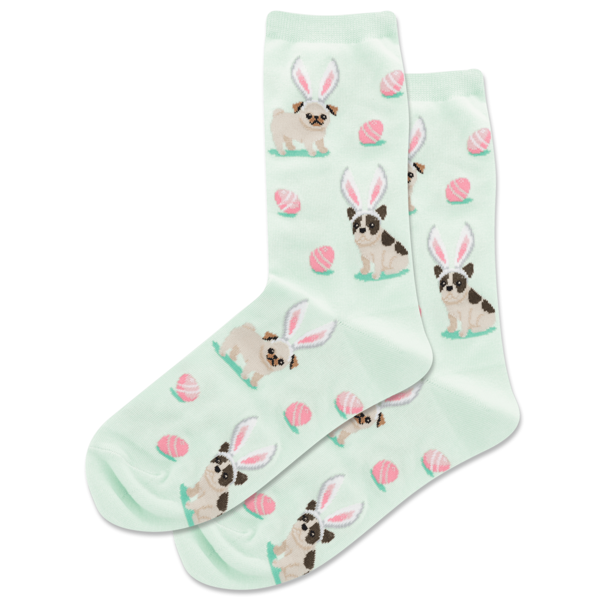 Our Easter Dogs Women's Crew Socks are just that, your new best friend. These adorable bunny-ear wearing puppies are just the addition your Easter basket needs!