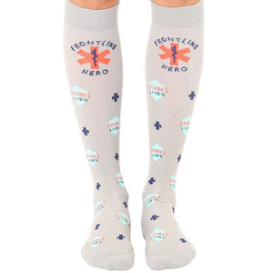 Fresh and fashionable! Our printed Frontline Worker Unisex Compression Knee High Sock are for the person that wants to keep their legs and feet healthy while doing the very important work of saving the world.