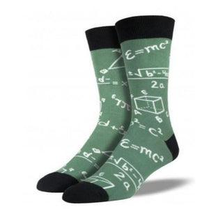 It doesn't take a mathematician to see the genius in our Math Socks! With a little geometry, calculus, and physics, these equation-laden socks have something for every math lover! Math Socks come in black with red detailing and green with black detailing. Get black for your classic, understated mathematically-minded friend. Get green for the guy with a little more pizzazz. Get both for the multidimensional mathematician in your life.
