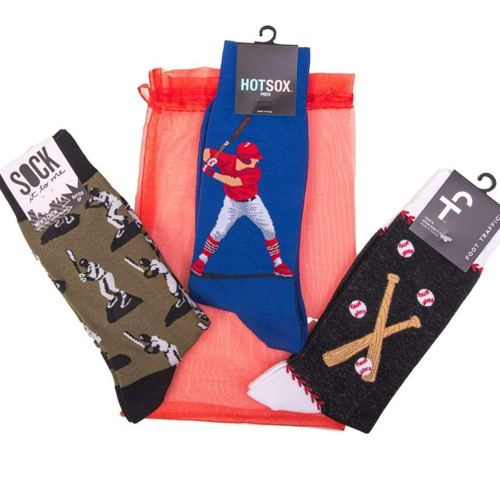 Get the baseball lover in your life a gift he will love! Baseball obsessed men will love this unique sock collection. The Home Run Baseball Gift Bag For Him is here!