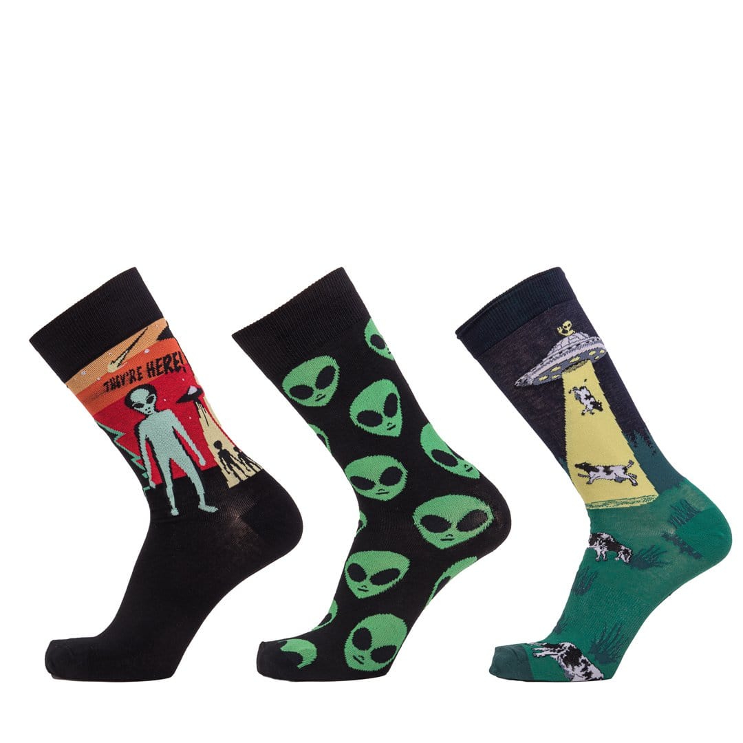 • 3 pairs of Men's Alien and UFO theme crew socks