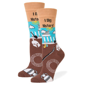 These socks feature themes from ancient Greece with the words, "I Dig History!" (do you love puns as much as we do?!)