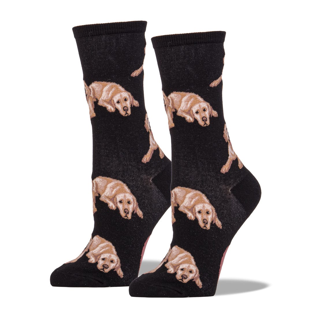 What is the best dog breed in the world? That's right you guessed it, it's the Labrador. Yellow Labs are my favorite and they look great on a black sock like these. Show off your best friend wherever you go with these fabulous Labrador Crew Socks. Labs are full of energy, great with children, and make a terrific pet.