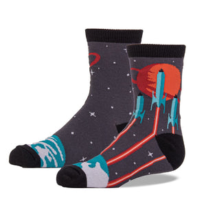 It's time to blast off. Launch yourself into these space-age special Launch from Earth Socks. Get through MAX Q in style. G's seem to melt away. 3 Rockets are launched on these socks so don't leave out your friends.