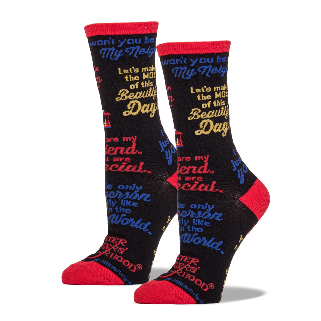 It's a beautiful day in the neighborhood when you're wearing these Mister Rogers Quotes Socks.  These stylish socks are filled with the best Mister Rogers quotes - "Let's make the most of this beautiful day", "I like you just the way you are", "You're my friend. You are special" and, of course, "Won't you be my neighbor".