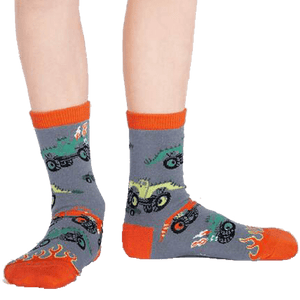 If your child is a monster truck lover and wants to be as close to the action as possible but can’t see over the steering wheel, then these Monster Truck Junior Crew Socks are the perfect addition to their crazy sock collection. Featuring a variety of super cool monster trucks adorned throughout with a red toe resembling flames, these Monster Truck Junior Crew Socks do not disappoint in awesomeness.