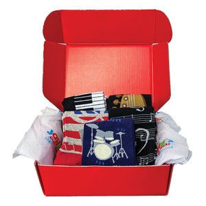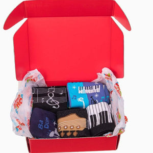 The next time that you stretch out on the couch to listen to your favorite Louis Armstrong record, The Band's The Band, or even a new Daft Punk release, make sure you're wearing one of the socks from our Music Lover Gift Box For Him.